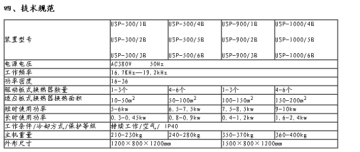 1.5針對(duì)板式換熱器存在的缺陷,我公司****研制了USP-B系列板式換熱器除垢裝置,該裝置通過(guò)超聲波除垢裝置去除換熱板上的硬垢,通過(guò)軟垢****裝置去除換熱板間的氧化物及泥沙等軟垢,徹底解決了板式換熱器的除垢難題。